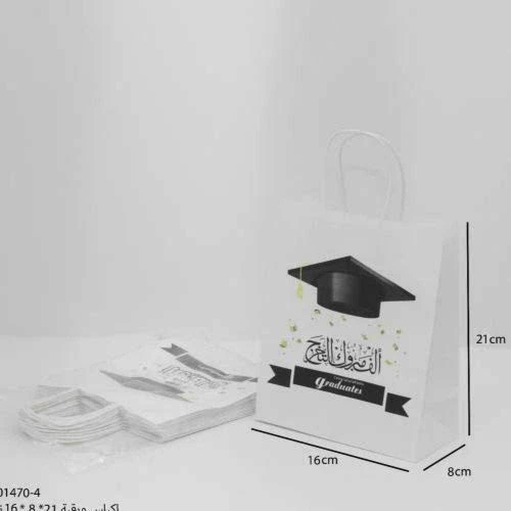اكياس الف مبروك التخرج مقاس 16*8*21 عدد 12 حبة بالكيس Congratulations Graduation Bags, size 16*8*21, 12 pieces per bag