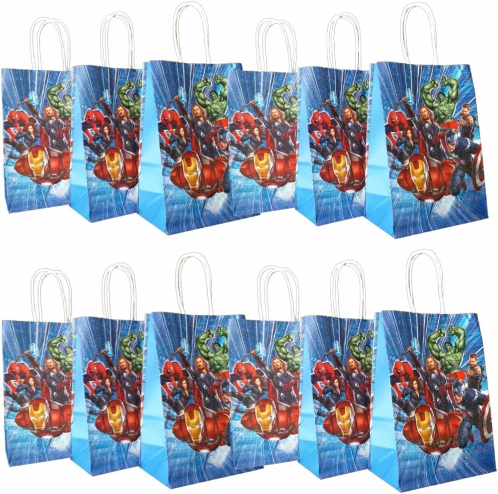 مواد عالية الجودة لهدايا حفلات أعياد الميلاد: حقائب الأبطال الخارقين مصنوعة من ورق كرافت عالي الجودة، 150 غرام لكل متر مربع، قوية بما يكفي لحمل الألعاب والحلوى وأي هدايا أخرى