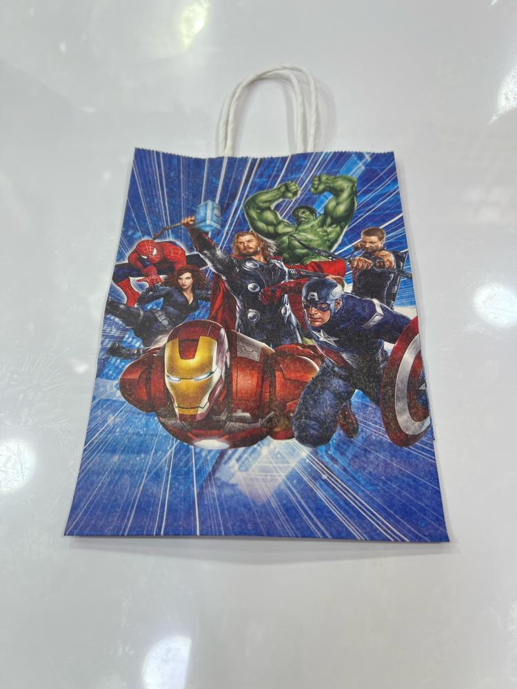 حقائب هدايا للأطفال: تتميز هذه الحقائب بشخصية هالك وثور وسبايدرمان ايرون مان وكابتن أمريكا وهوك وبلاك ويدو. سيحب الأطفال حقائب هدايا افينجرز