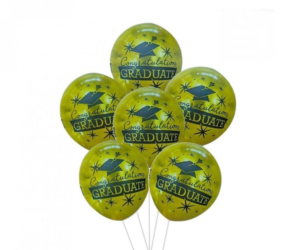 بالونات مبروك التخرج باللون الذهبي برسمات قبعه التخرج تضيف روح الاحتفال ليوم لا ينسى.