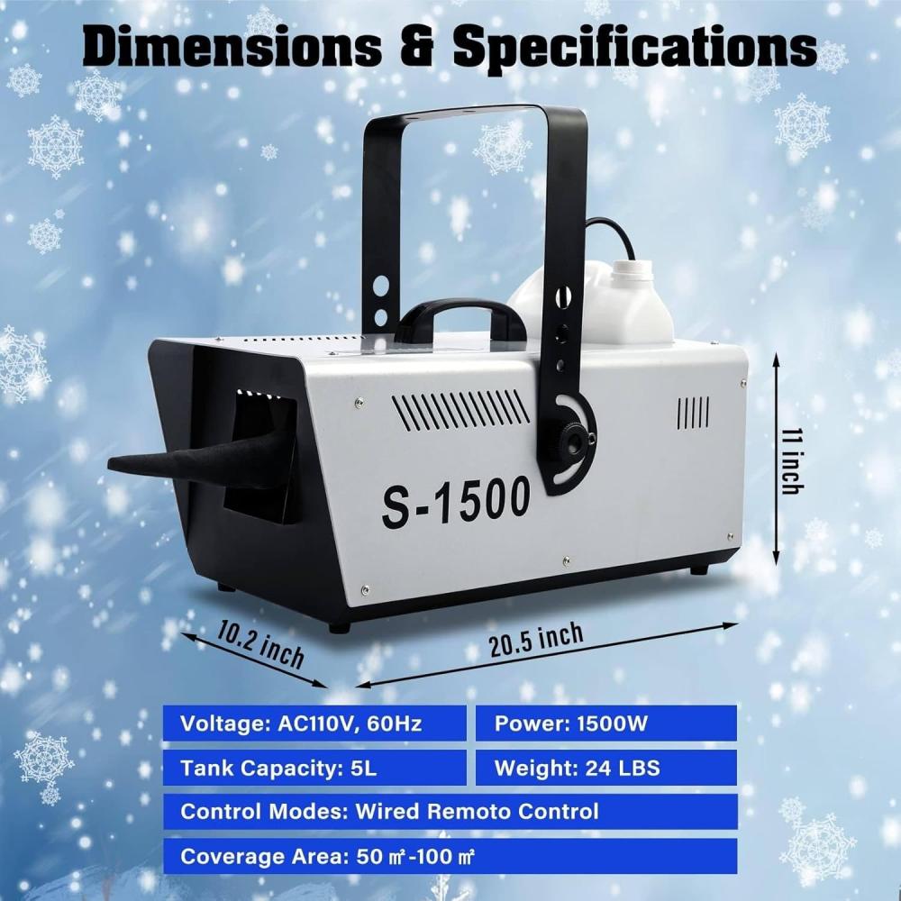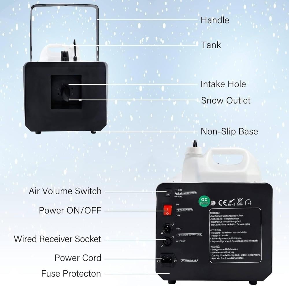 سنو ماشين الة صنع الثلج 1500 واط , جهاز ثلج ديسكو دي جيه لحفلات الزفاف , الة رش الثلج على المسرح بتاثير بقدرة 1500 واط Snow Machine 1500W Snow Maker, Disco DJ Snow Machine for Wedding, 1500W Stage Snow Effect Machine