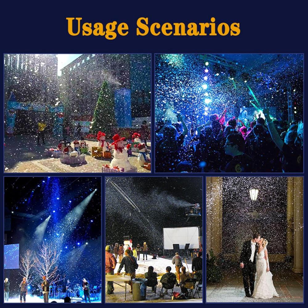 - 【يستخدم على نطاق واسع】ما عليك سوى استخدام جهاز التحكم عن بعد لرش الثلج بشكل مستمر. رائعة لخلق تأثير بصري مثير للكريسماس أو حفلات الزفاف أو الحفلات أو الأداء المسرحي أو نادي الدي جي أو قاعات الرقص أو الديسكو وما إلى ذلك.