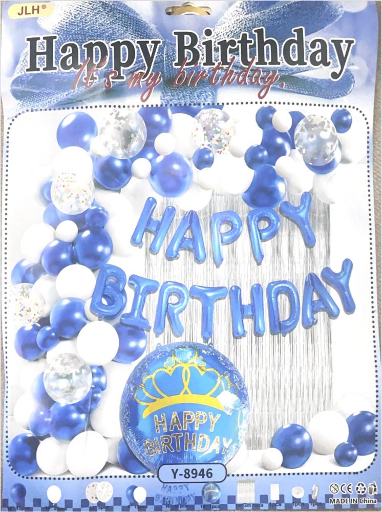 طقم بالون عيد ميلاد ازرق و ابيض Blue and white birthday balloon set