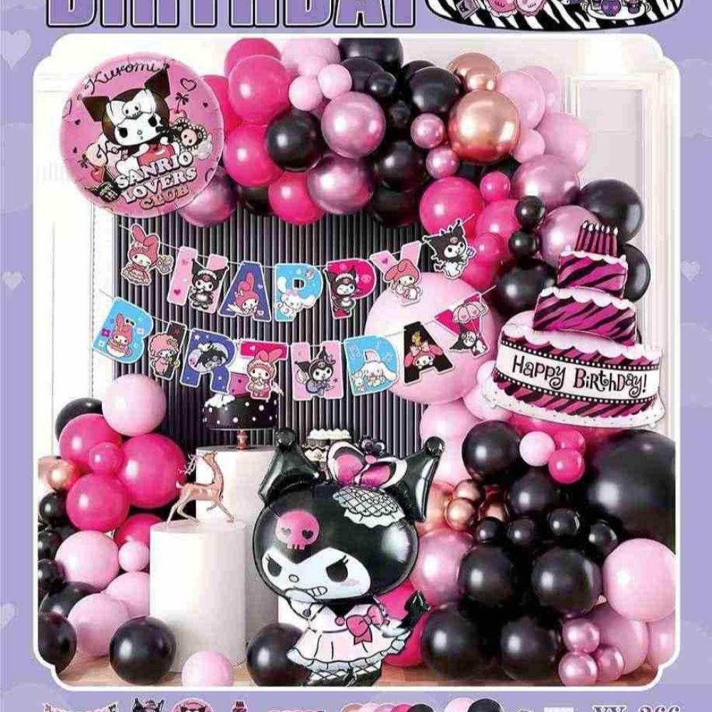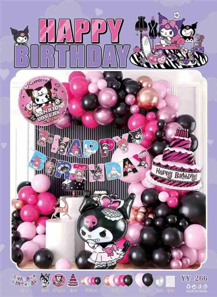 طقم ديكور بالونات عيد ميلاد كيكة كرومي kuromi Birthday Cake Balloon Decoration Set