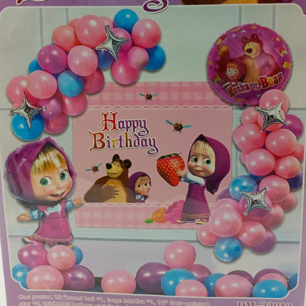 طقم ديكور بالونات عيد ميلاد ماشا Masha Birthday Balloon Decoration Set