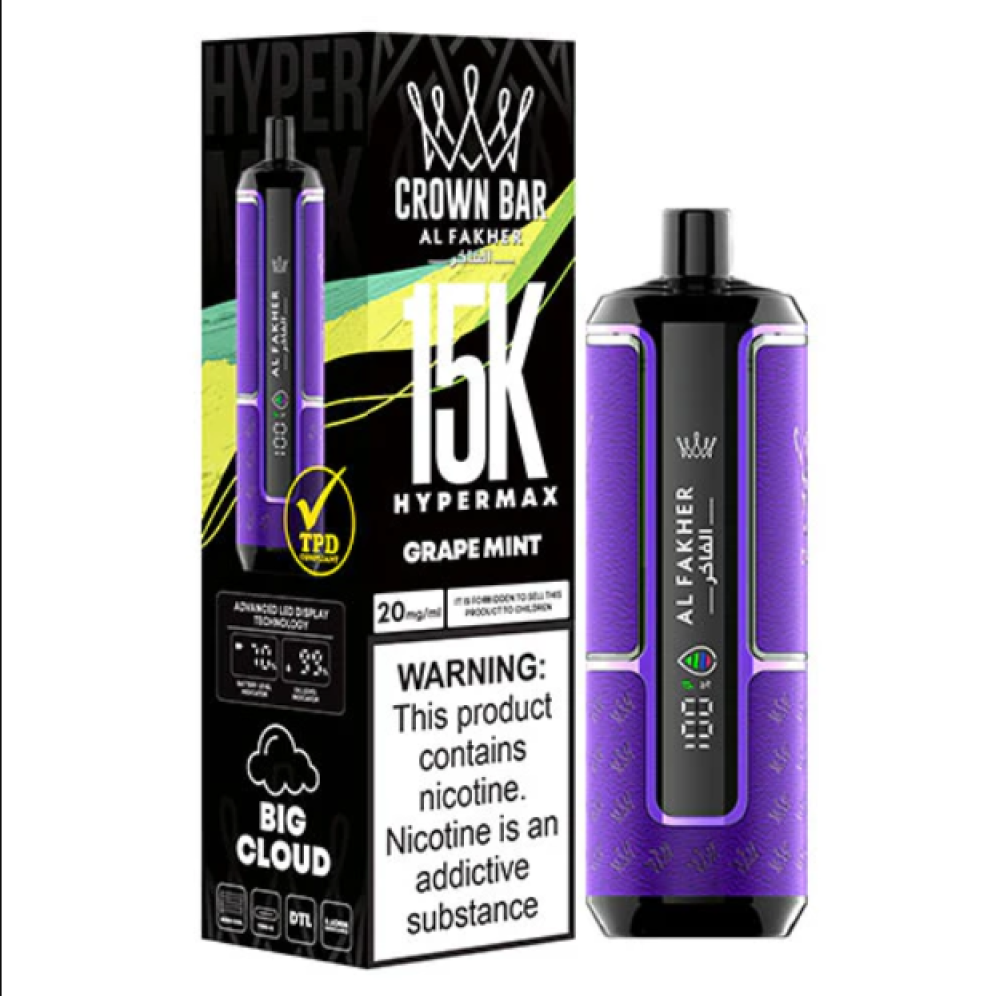 كراون بار الفاخر هايبر ماكس 15000 سحبة عنب نعناع AL FAKHER CROWN BAR HYPERMAX 15000 PUFFS Grape Mint